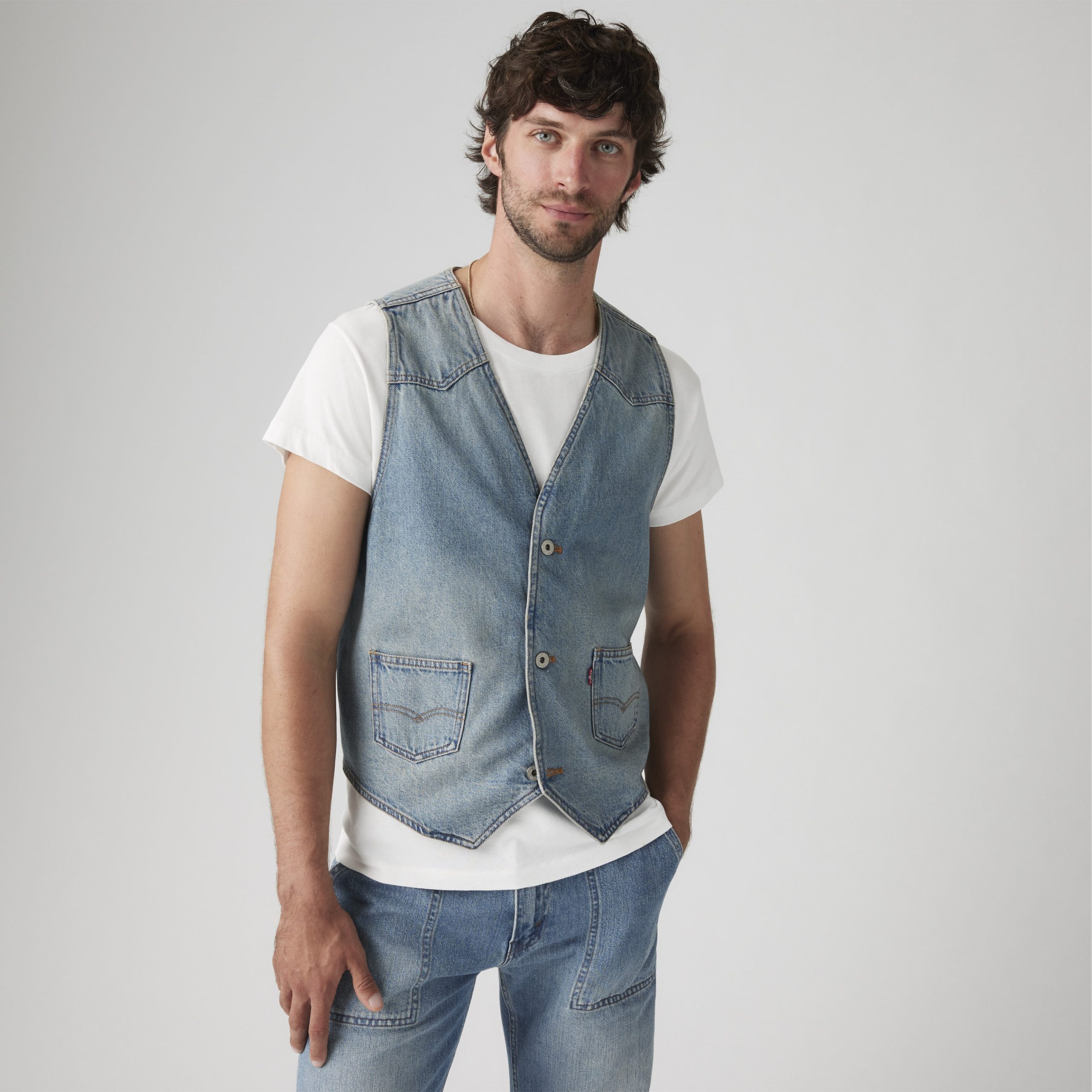 • A versatile denim vest