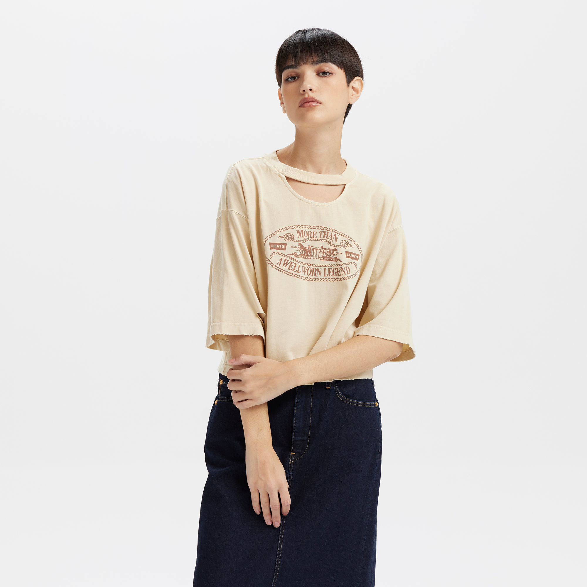 The Levi’s? Women’s Distressed Design Printed Logo Short Sleeve Tee combines trendy prints with a distressed style. showcasing a unique sense of individuality. This tee is not only fashionable but also exudes a casual rebellious vibe. adding energy and character to every outfit. Made from comfortable fabric with a relaxed fit. it’s the perfect choice for everyday wear. effortlessly pairing with jeans or a skirt for a laid-back look.